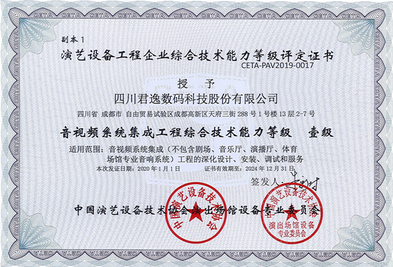 公司股份制改造,注冊(ce)資本5000萬元,取得建筑智能化工程設(she)計與施工壹級資質,成(cheng)立(li)君逸企業(ye)技術中(zhong)心獲(huo)評成(cheng)都市企業(ye)技術中(zhong)心