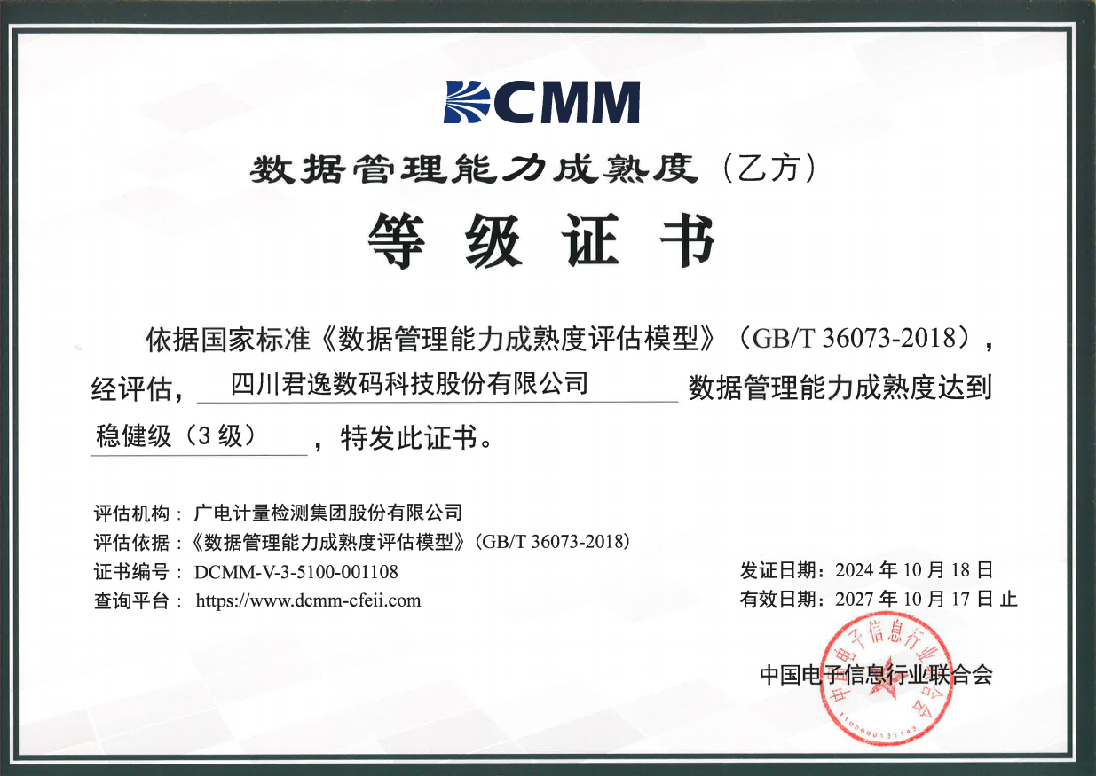 引(yin)進3家機構投資(zi)者(zhe),融資(zi)4500萬元,成立(li)全資(zi)子公司君(jun)逸(yi)數聯(lian),獲(huo)評四川省企業技術中心