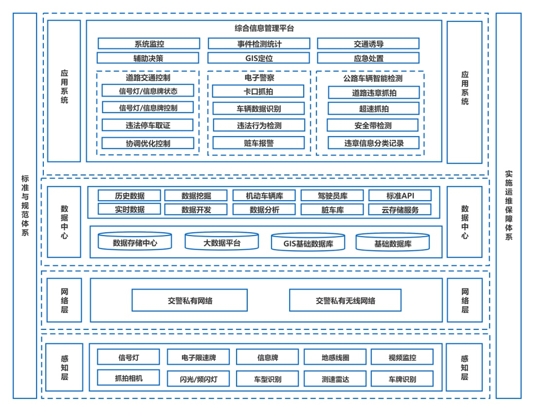 系統將各種感知傳感器的各類圖片、視頻、數據等信息本地化存儲及處理合成后,通過傳輸網絡傳輸至后端平臺;進而完成各類數據的集中存儲與分發、計算、處理,大量使用數據模型、數據挖掘等數據處理技術,以提升交通管控能力、提高通行效率、為公眾提供交通信息服務。