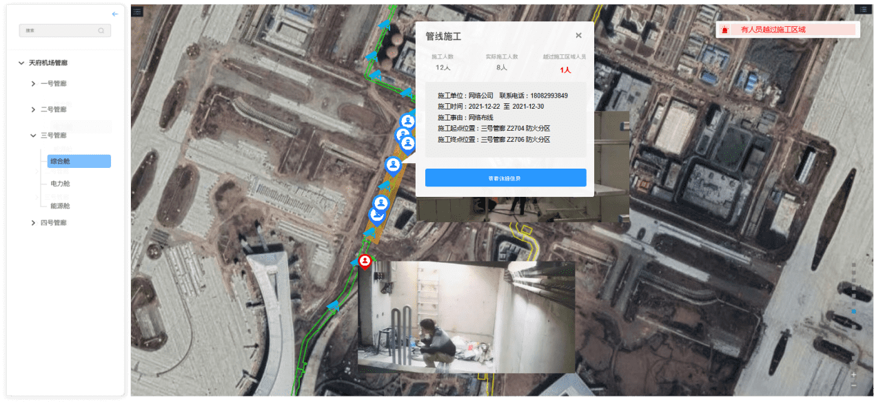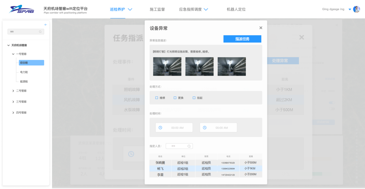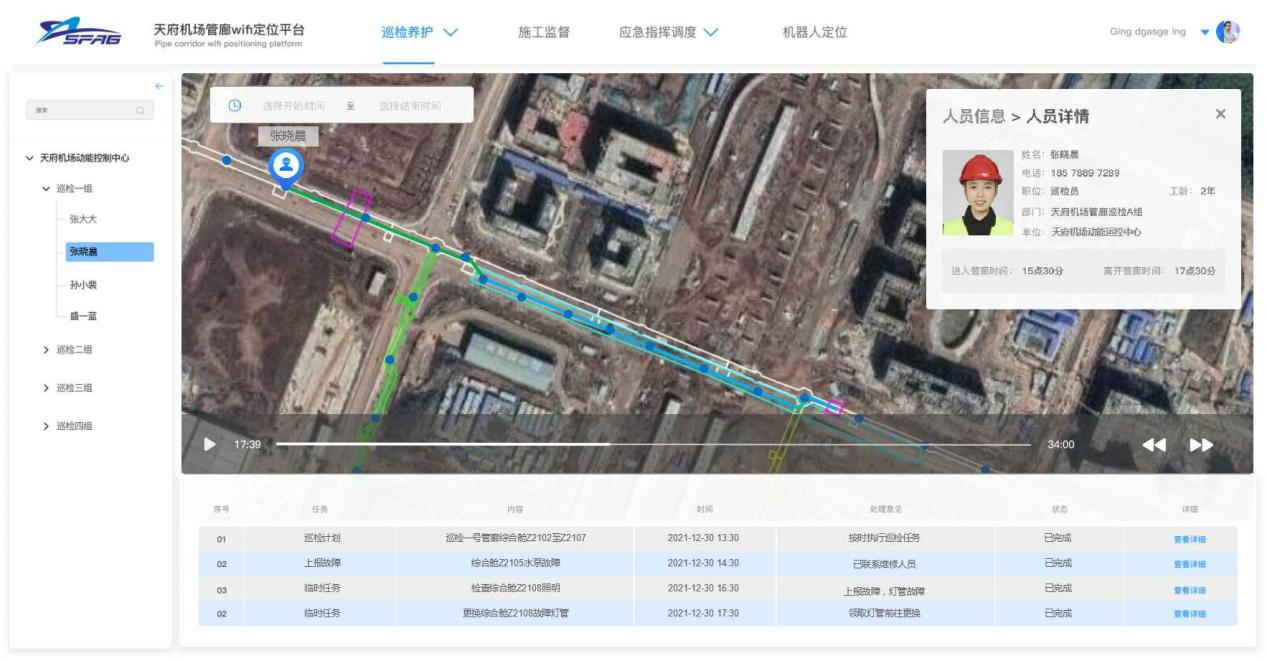 根據綜合管廊成線性的地理特征,公司的WIFI定位系統做了優化處理,防止定位到隔壁艙室或定位到管廊區域外部。