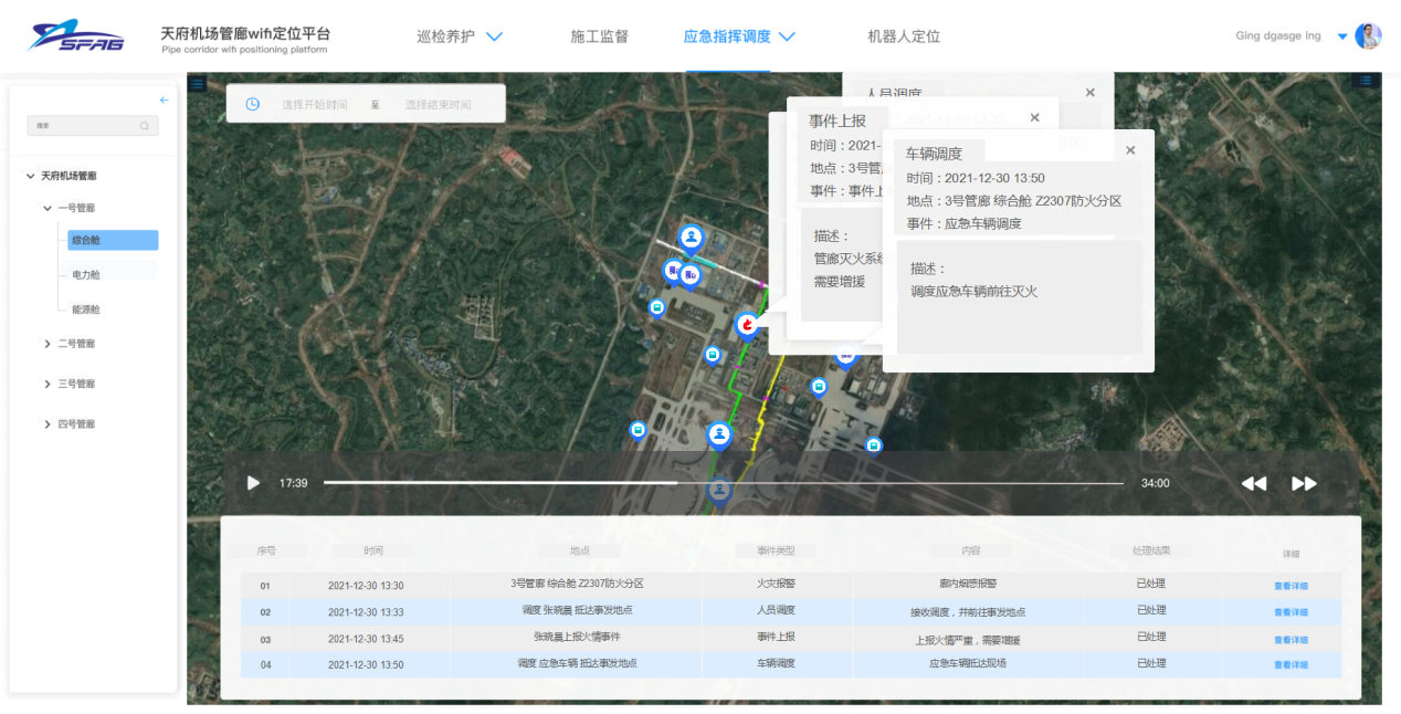 存儲應急事件中的人員和設備的活動軌跡,用于后期回放、總結和分析,提升應急處置的能力。