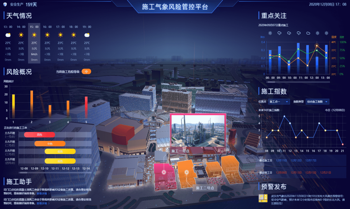 根據施工工地當日每個小時的天氣情況精確制定施工計劃,避免天氣原因造成施工風險。