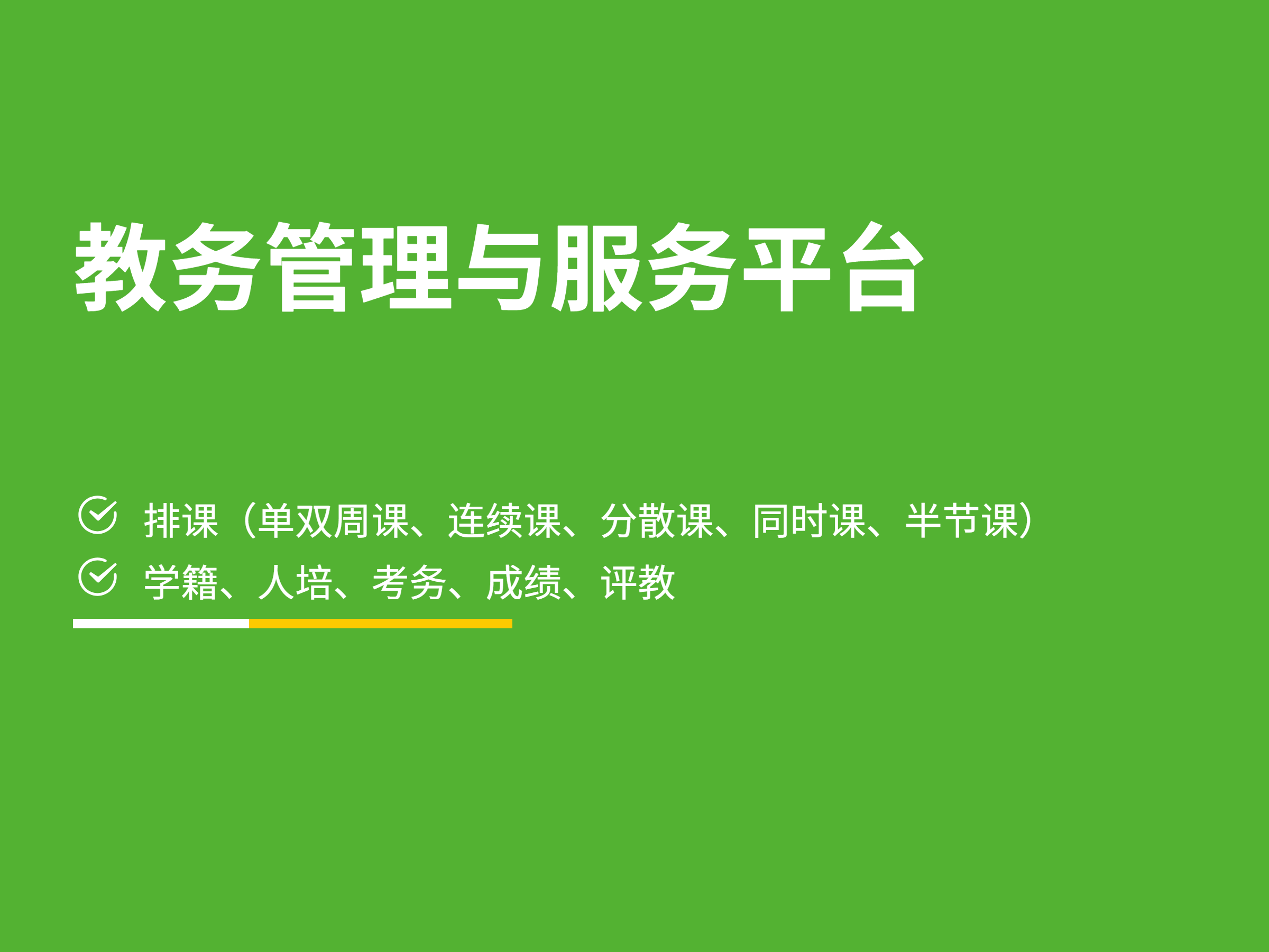 教務(wu)(wu)管(guan)(guan)理(li)(li)與服務(wu)(wu)平(ping)臺為教務(wu)(wu)教學(xue)工作提(ti)供(gong)(gong)先(xian)進、實(shi)用(yong)的(de)信息化(hua)(hua)管(guan)(guan)理(li)(li)手段;為學(xue)生、教師及管(guan)(guan)理(li)(li)人員(yuan)提(ti)供(gong)(gong)簡便(bian)、快捷的(de)網絡化(hua)(hua)信息服務(wu)(wu),幫助(zhu)學(xue)校(xiao)(xiao)建立規范的(de)教務(wu)(wu)管(guan)(guan)理(li)(li)服務(wu)(wu)。實(shi)現教務(wu)(wu)管(guan)(guan)理(li)(li)一體(ti)化(hua)(hua),促進工作規范化(hua)(hua)、制(zhi)度化(hua)(hua)、科學(xue)化(hua)(hua)、智(zhi)能化(hua)(hua),有效(xiao)促進學(xue)校(xiao)(xiao)教務(wu)(wu)管(guan)(guan)理(li)(li)水平(ping)和提(ti)高效(xiao)率。